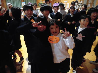 6年生主催の全校によるハロウィンパーティーがありました。国語の学習を生かし、みんなが楽しめる遊びを考えました。