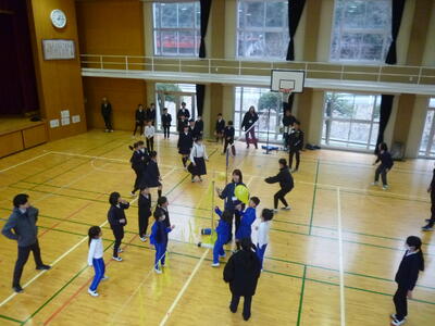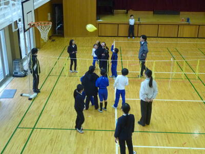 先生への挑戦 パートⅡ 投稿: 編集長2 (07:03) 先生への挑戦第2弾。 今回はソフトバレーボールでした。 「先生へ挑戦する対戦」と「先生と一緒に挑戦」とに分かれ、多くの子どもたちが楽しめるようにしました。 一生懸命ボールを追いかける子どもたちは先生のハッスルプレーがたくさん見られました。 次回は、6年生のリクエストでおにごっことなりました。 Tweet -