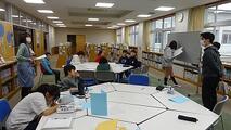 入学受付のあと、式が始まるまでの時間は教室で6年生がリラックスタイムを用意してくれていました。