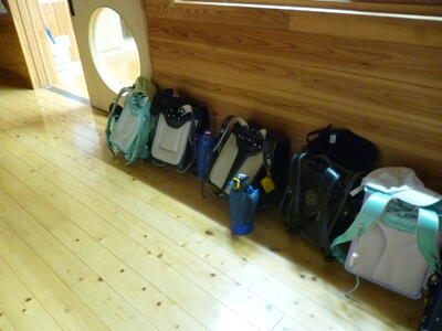 集まった教室の前には、きれいにランドセルが並べておいてありました。さすが、高学年です!